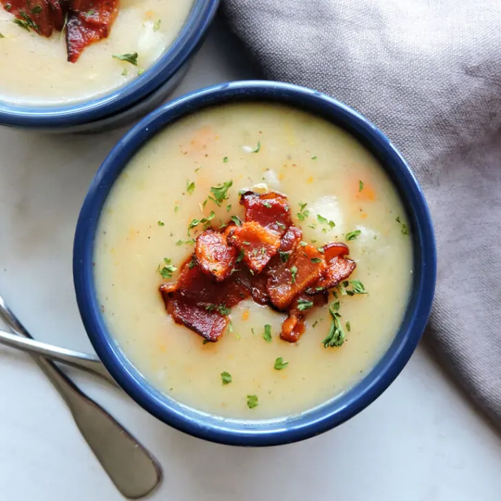 It’s all the flavor of a loaded baked potato garnished with green onions and bacon crumbles. It’s sure to become one of your favorite Instant Pot soup recipes. Don’t worry if you don’t have an Instant Pot, I included stove top directions as well!