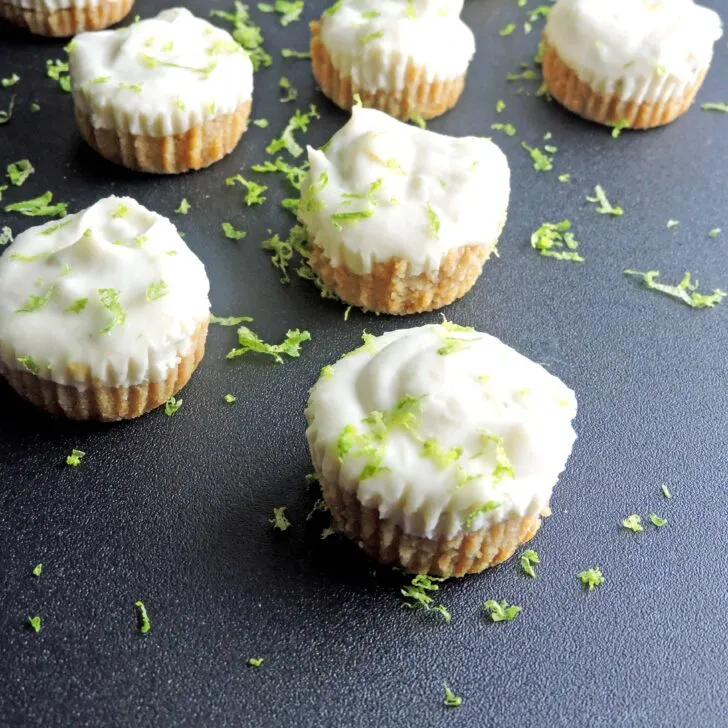 - Spoon the key lime mixture into the cooled muffin wrappers on top of the crust and freeze for 2-3 hours. Transfer to the fridge until ready to serve. Serve chilled and with extra grated lime zest.